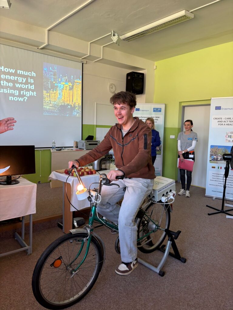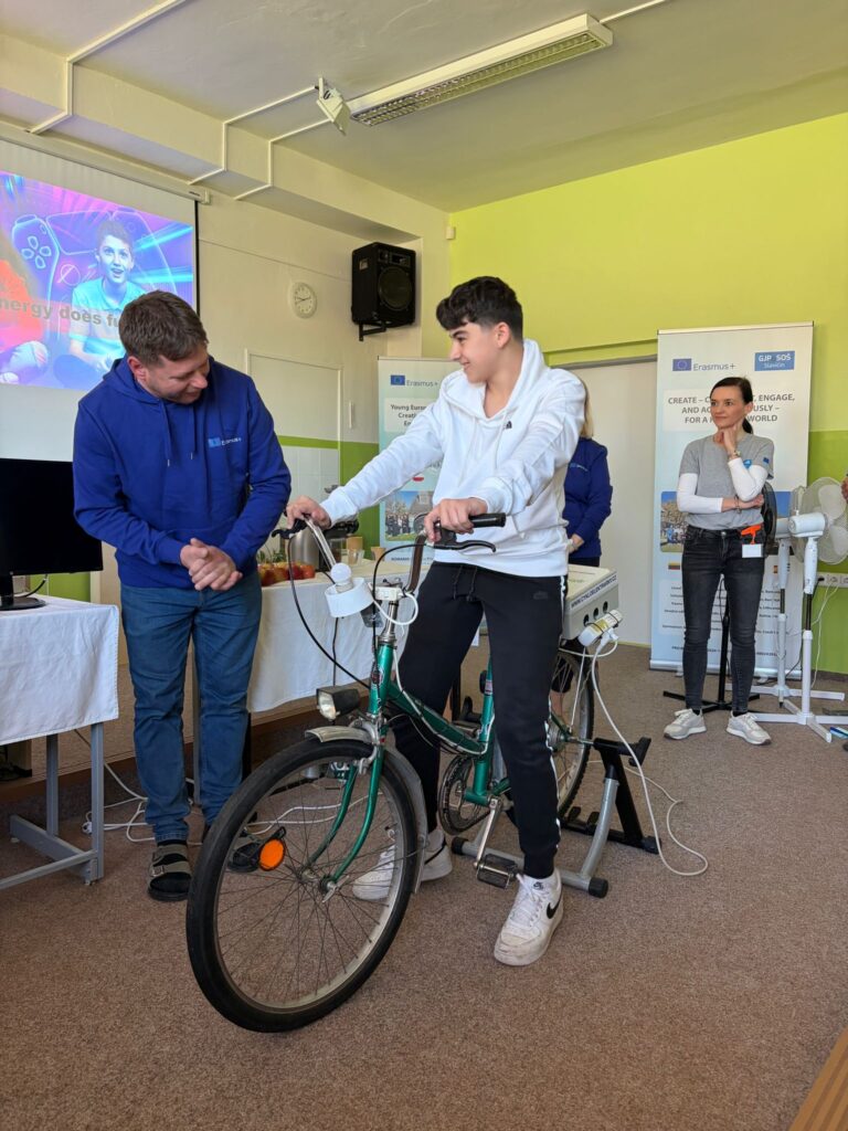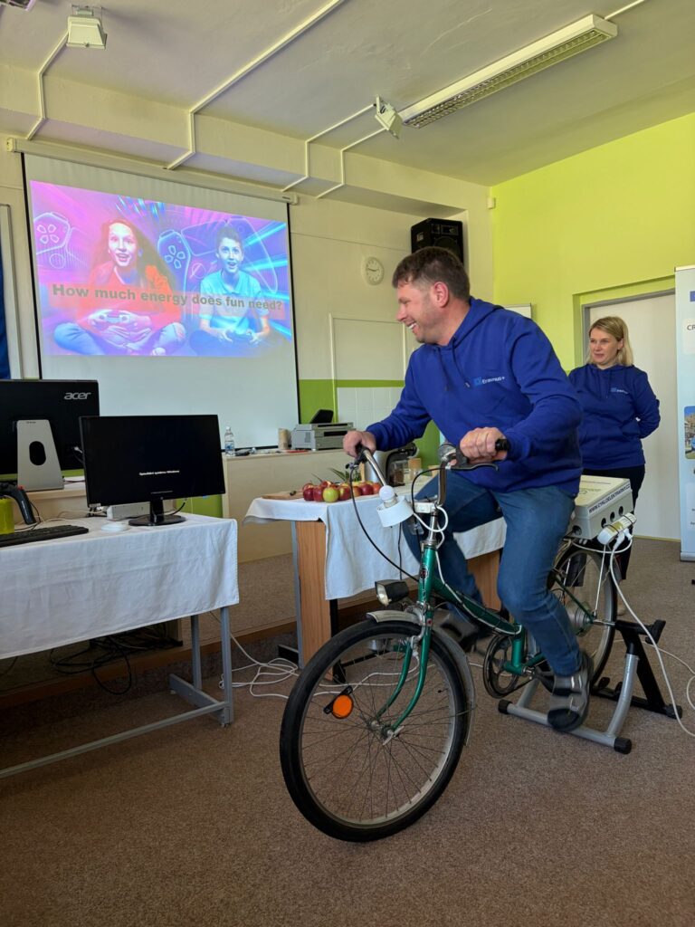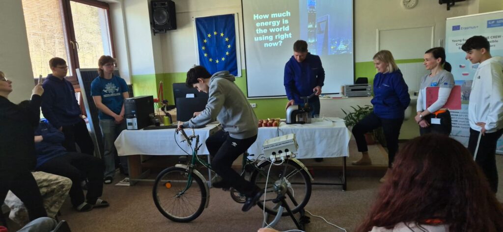 Some students generated electricity in different ways, such as for example riding a bike to make apple juice. Starting the computer with the power of your legs appeared the hardest. We all realized how much energy is needed to make the digital equipment work. We found out that entertainment alone accounts for 10 percent of total world energy consumption and on our own experience we were able to realise how much effort it requires to power a single device. It was an eye opening and very educational experience. Thanks to the clarity of explanation and visual demonstrations, even those who were not very knowledgeable about the laws of physics, could understand its concepts with ease.