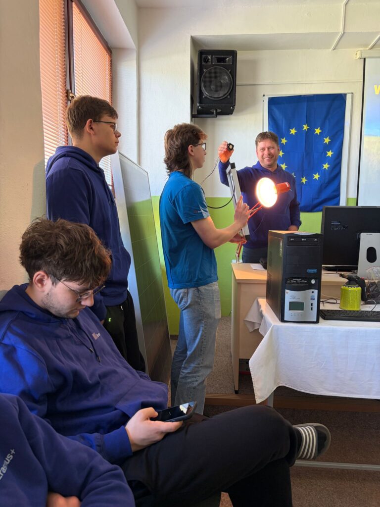 The demonstrations were followed by a practical part. Students were supposed to create a sun dial, start a mobile phone using solar panels and make a wind mill model using a 3d printer. The successes of all groups were sealed with souvenir photos.