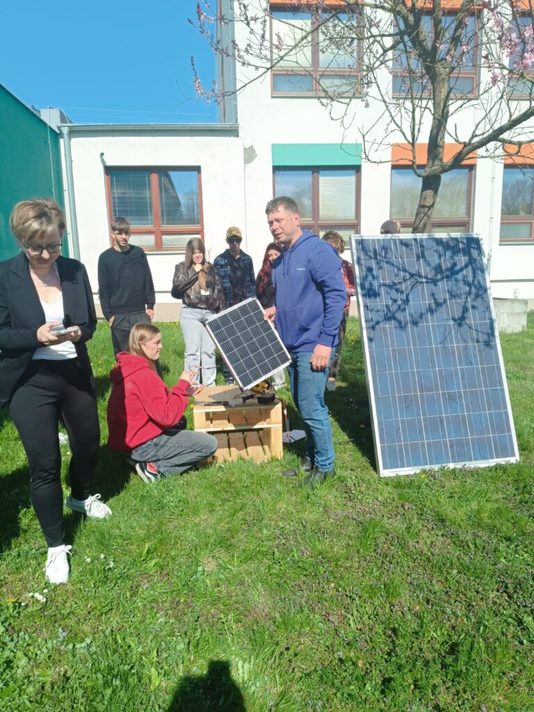 Wednesday 22nd April started with activities in school. First we were introduced to the topic of energy production, traditional and alternative energy sources, their pluses and minuses. Then came the practical part. We saw how the light from a lamp activated a solar panel, how common fans could make miniature turbine work. We were surprised to find out that the effectiveness of the electricity production depends more on the constancy rather than on its strength.
